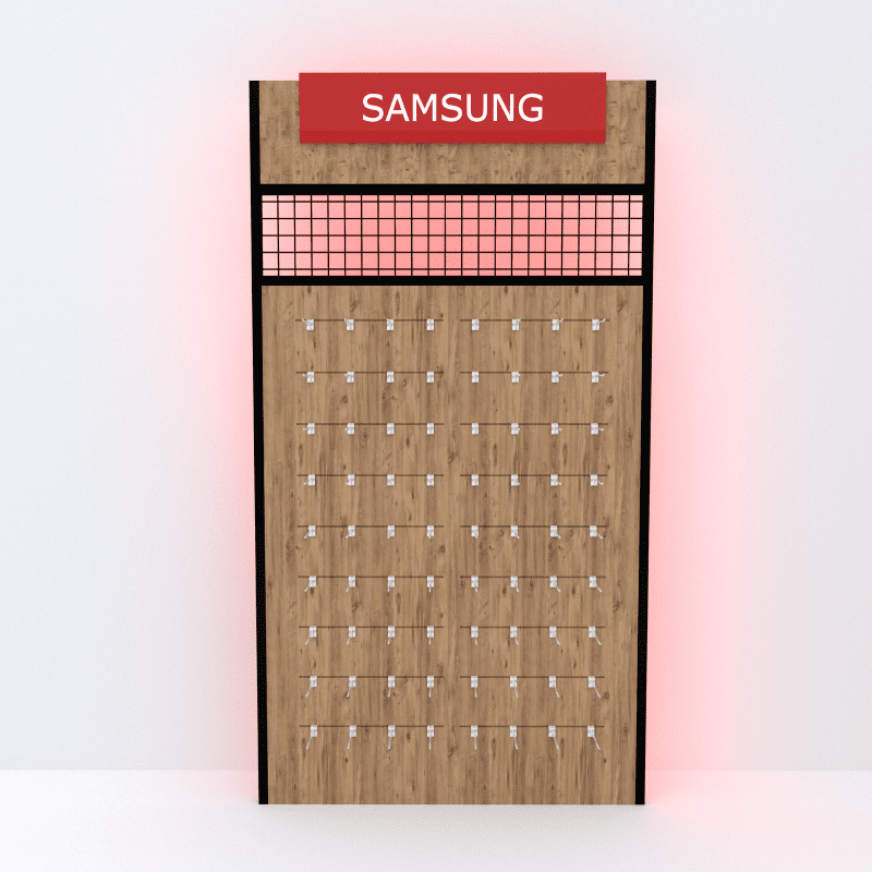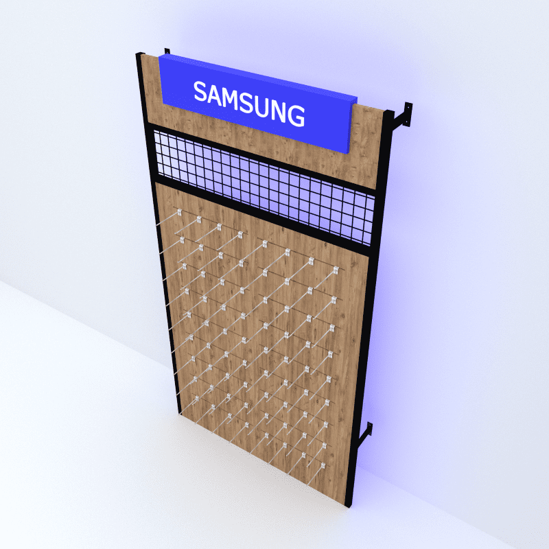 Textilpaneele mit Logo des jeweiligen Mobilfunkanbieters inklusive Herstellerlogo.